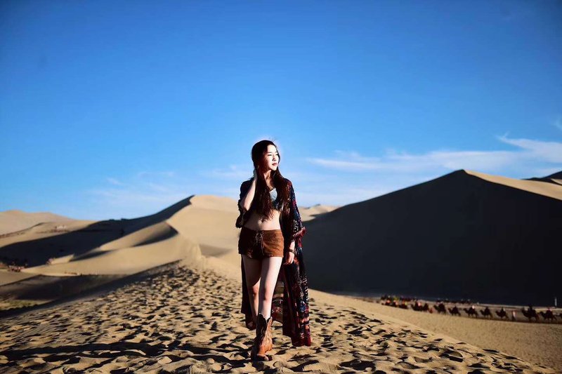 敦煌古道行沙漠露营基地地址:甘肃 · 酒泉 · · 月牙泉镇河水村四组鸣沙山后山